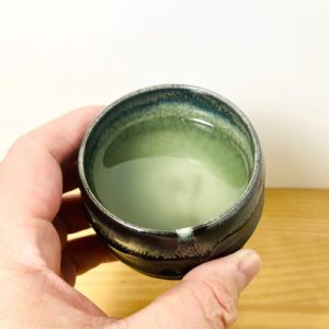 福壽草と大堀相馬焼のぐいのみ(福島)